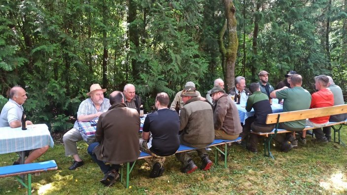 Am Sonntag dem 02.07.2023 trafen sich am Vormittag die Horber Jäger des Hegering 9 zum gemeinsamen Austausch an der Jagdhütte im Eutinger Revier. Der Dank geht hier an Siegbert Kreidler (Jagdpächter Eutingen), welcher seine Jagdhütte als Veranstaltungsort stellte und zusammen mit Hegeringleiter Benedict Schupp das Treffen organisierte. Für das leibliche Wohl, in Form von Frühstück und Getränken wurde ebenfalls reichlich gesorgt.